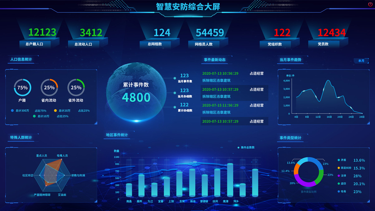 全方位立體式還原院區(qū)實(shí)貌,分圖層對(duì)院區(qū)的區(qū)域、建筑、單位、安防設(shè)備、管理設(shè)備、警情等進(jìn)行查看、監(jiān)控和跟蹤;通過院區(qū)各類安防管理設(shè)備實(shí)時(shí)獲取各重點(diǎn)監(jiān)控區(qū)域的監(jiān)控?cái)?shù)據(jù),對(duì)各種突發(fā)事件進(jìn)行報(bào)警。通過人臉識(shí)別、車牌識(shí)別、行為識(shí)別、武器管理、營區(qū)設(shè)備等各類傳感器,對(duì)人、車、物及其行為的全面感知,保障營區(qū)安全。 -